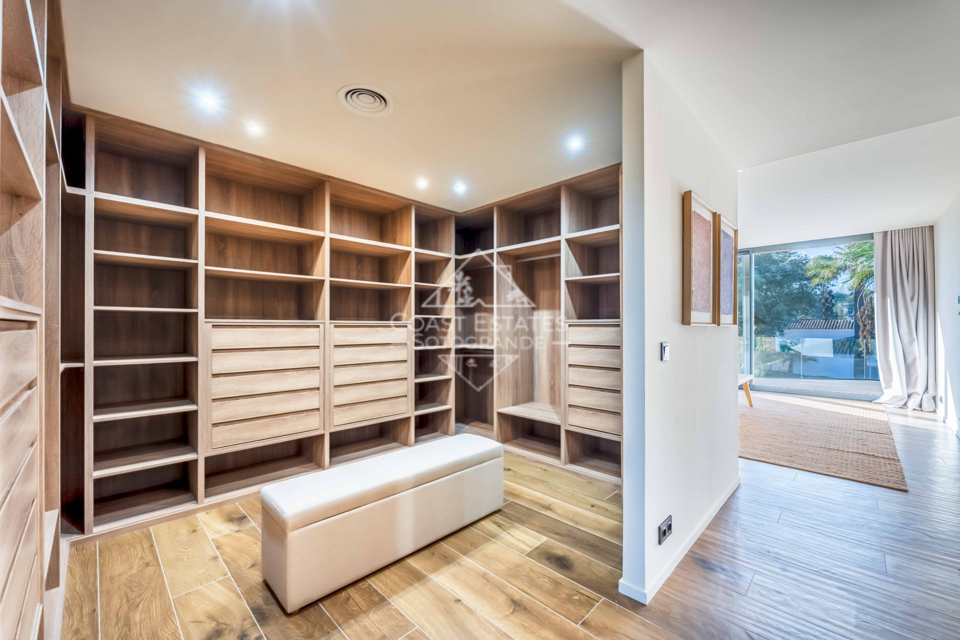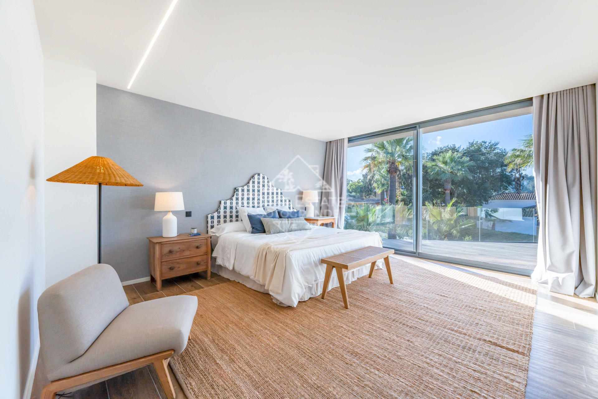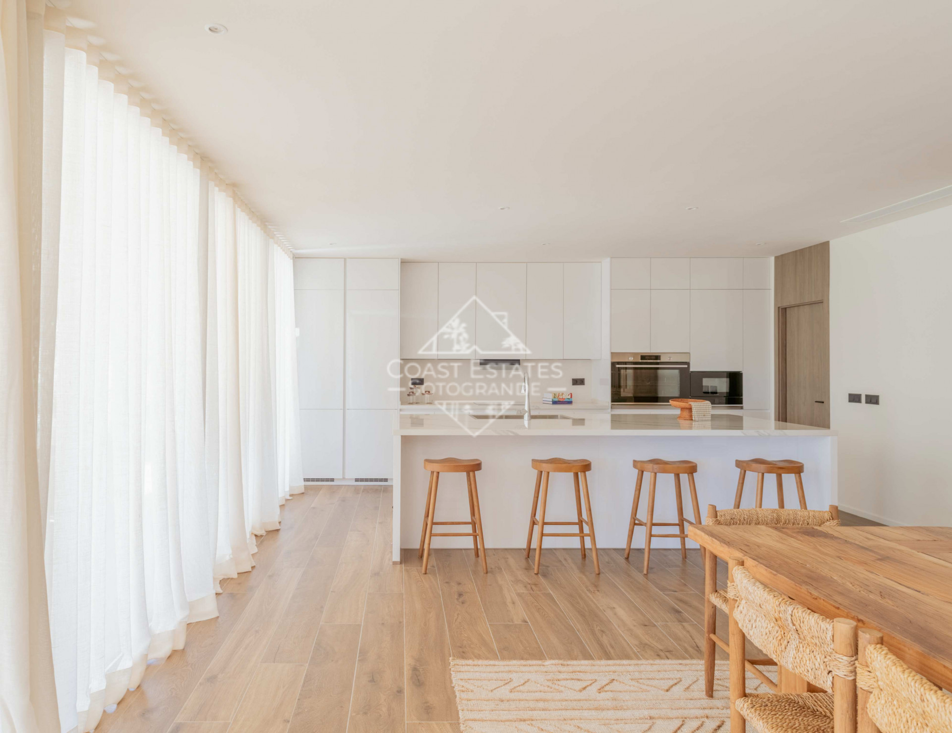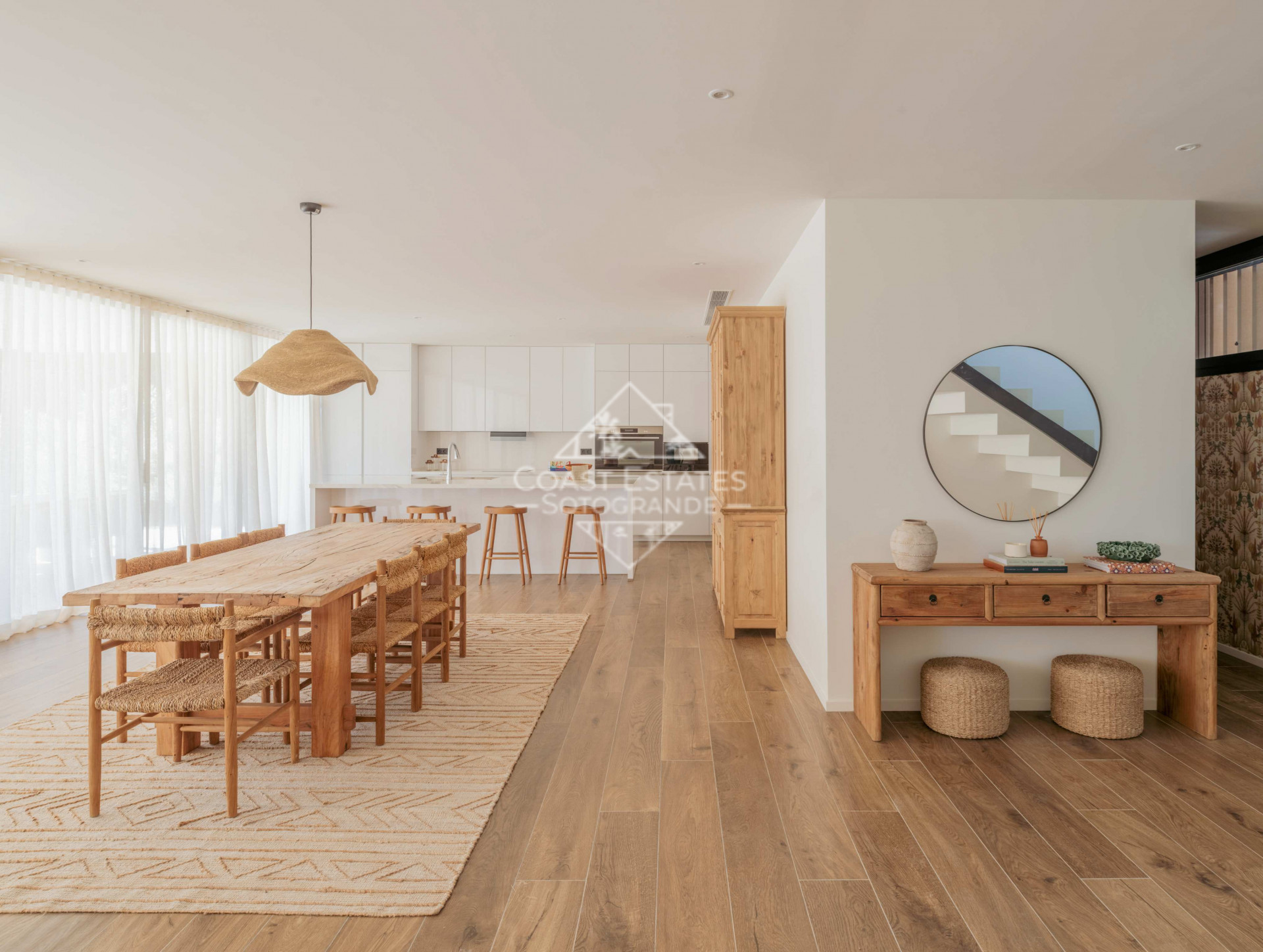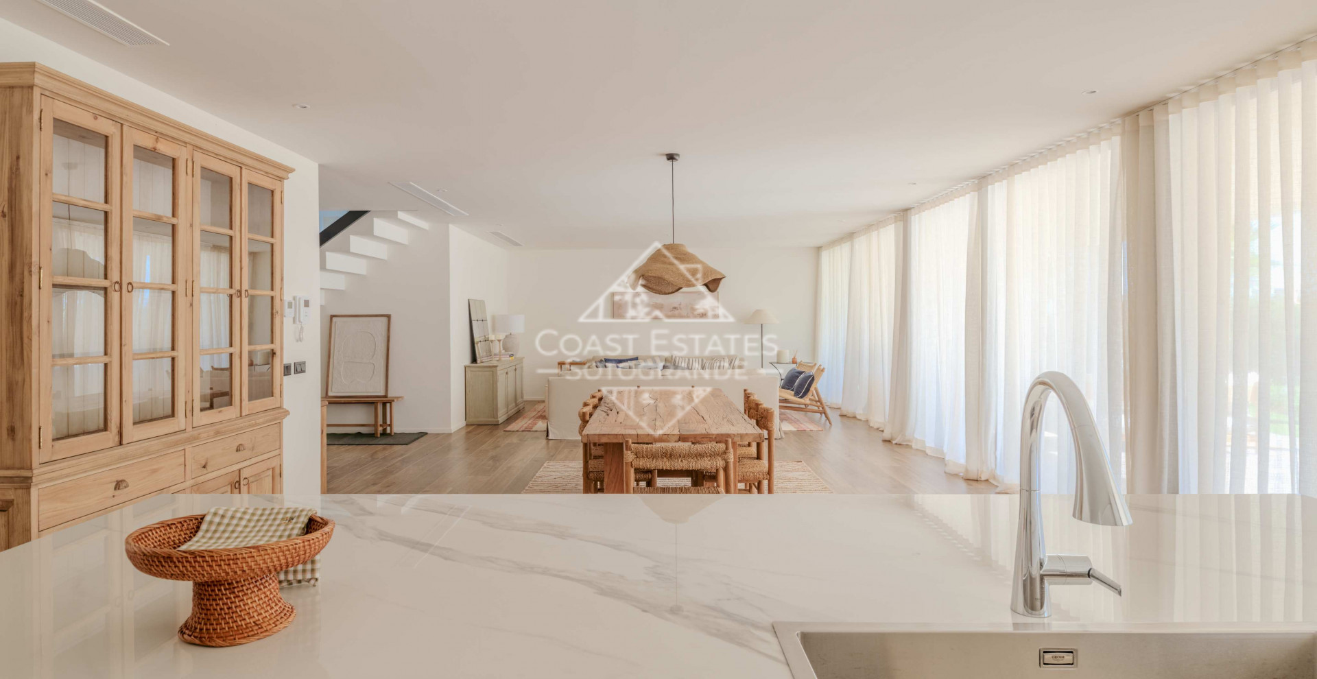 Die Villa erstreckt sich über beeindruckende 759 m² auf einem 1.250 m² großen Grundstück und bietet viel Platz für Wohnen im Innen- und Außenbereich. Sie verfügt über vier geräumige Schlafzimmer mit eigenem Bad, die alle sorgfältig für Privatsphäre und Komfort gestaltet sind. Ein besonderes Highlight ist die amerikanische Küche, die sich nahtlos in die offenen Wohnbereiche einfügt und mit modernsten Geräten ausgestattet ist, um allen kulinarischen Ansprüchen gerecht zu werden. Die Immobilie verfügt außerdem über Zentralheizung und Klimaanlage für ganzjährigen Komfort, während Solarmodule zur Energieeffizienz beitragen. Mit Blick auf die umliegende Landschaft und den Pool verkörpert die Villa den Inbegriff kultivierten Wohnens.