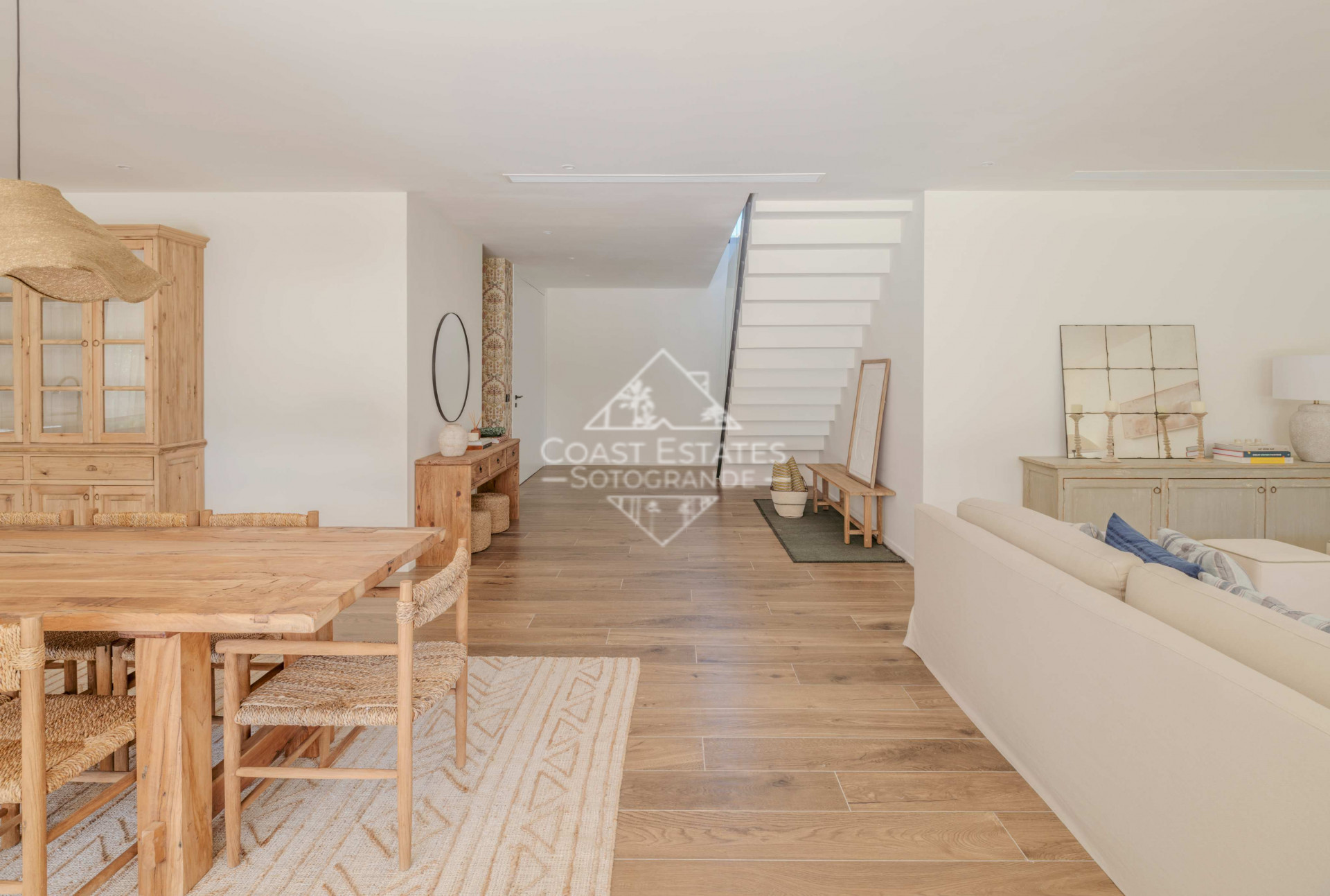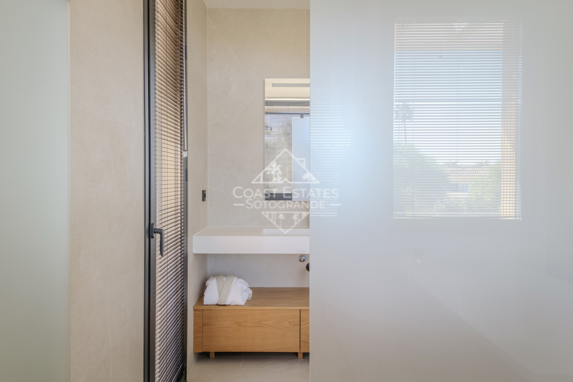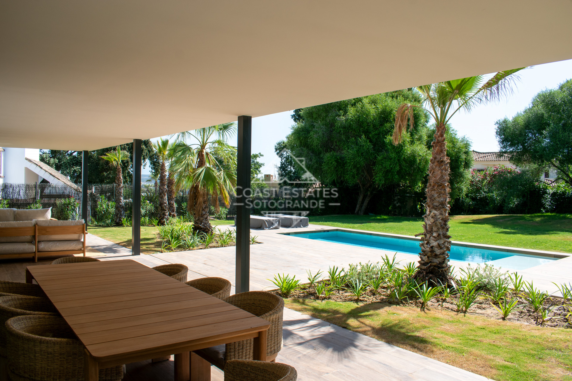 Eingebettet in die prestigeträchtige Zona B von Sotogrande Costa bietet diese neu erbaute Luxusvilla einen unvergleichlichen Küsten-Lifestyle in einer der begehrtesten Lagen von Cádiz. Das beeindruckende Design vereint moderne Architektur mit praktischer Eleganz und macht es zur idealen Wahl für alle, die ein anspruchsvolles und dennoch komfortables Zuhause suchen. Dank der idealen Lage in Strandnähe, Golfplätzen und wichtigen Annehmlichkeiten sind Komfort und Freizeit stets in Reichweite. Der private Pool und der wunderschön angelegte Garten schaffen einen ruhigen Rückzugsort, ideal zum Entspannen oder für Gäste.