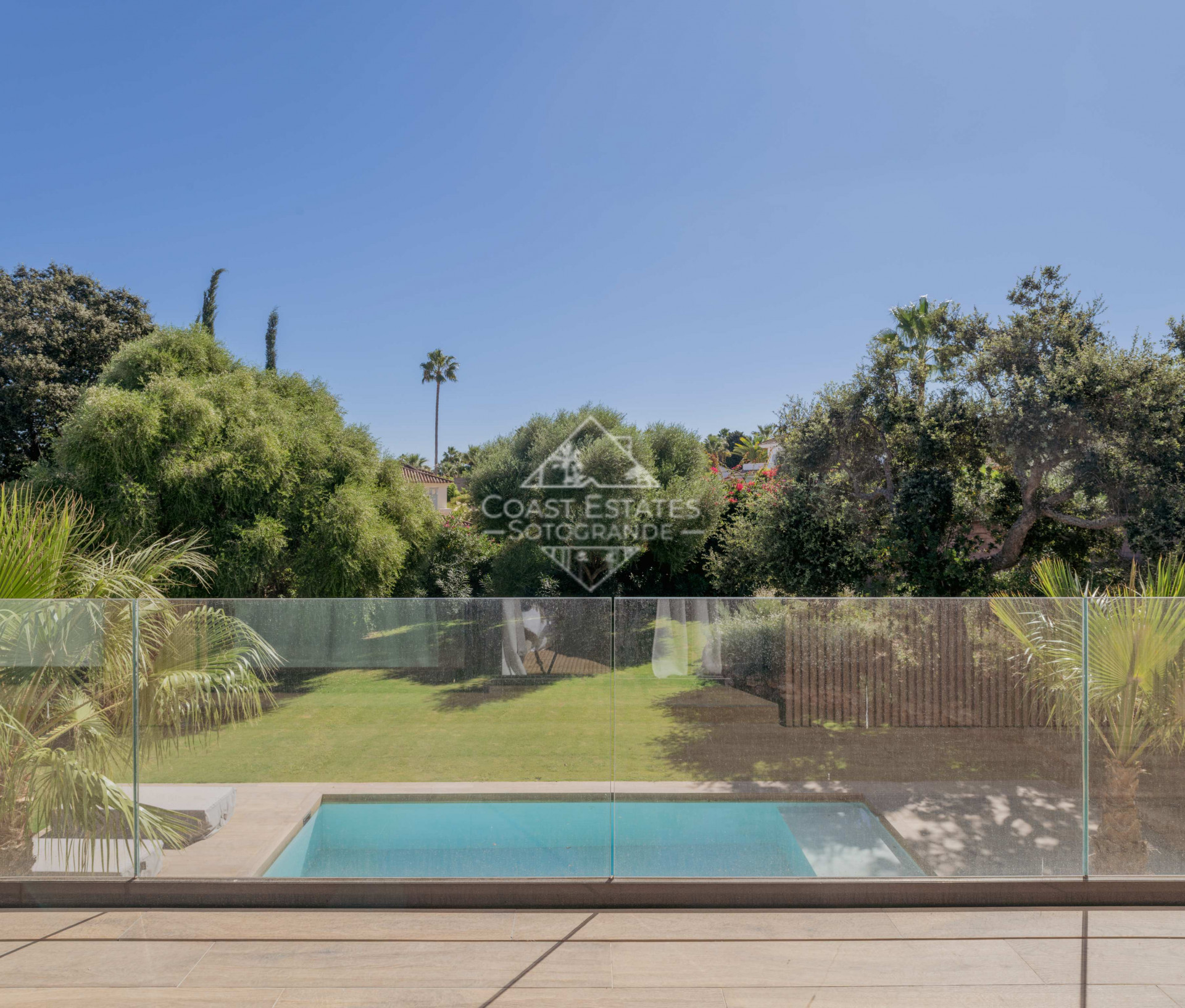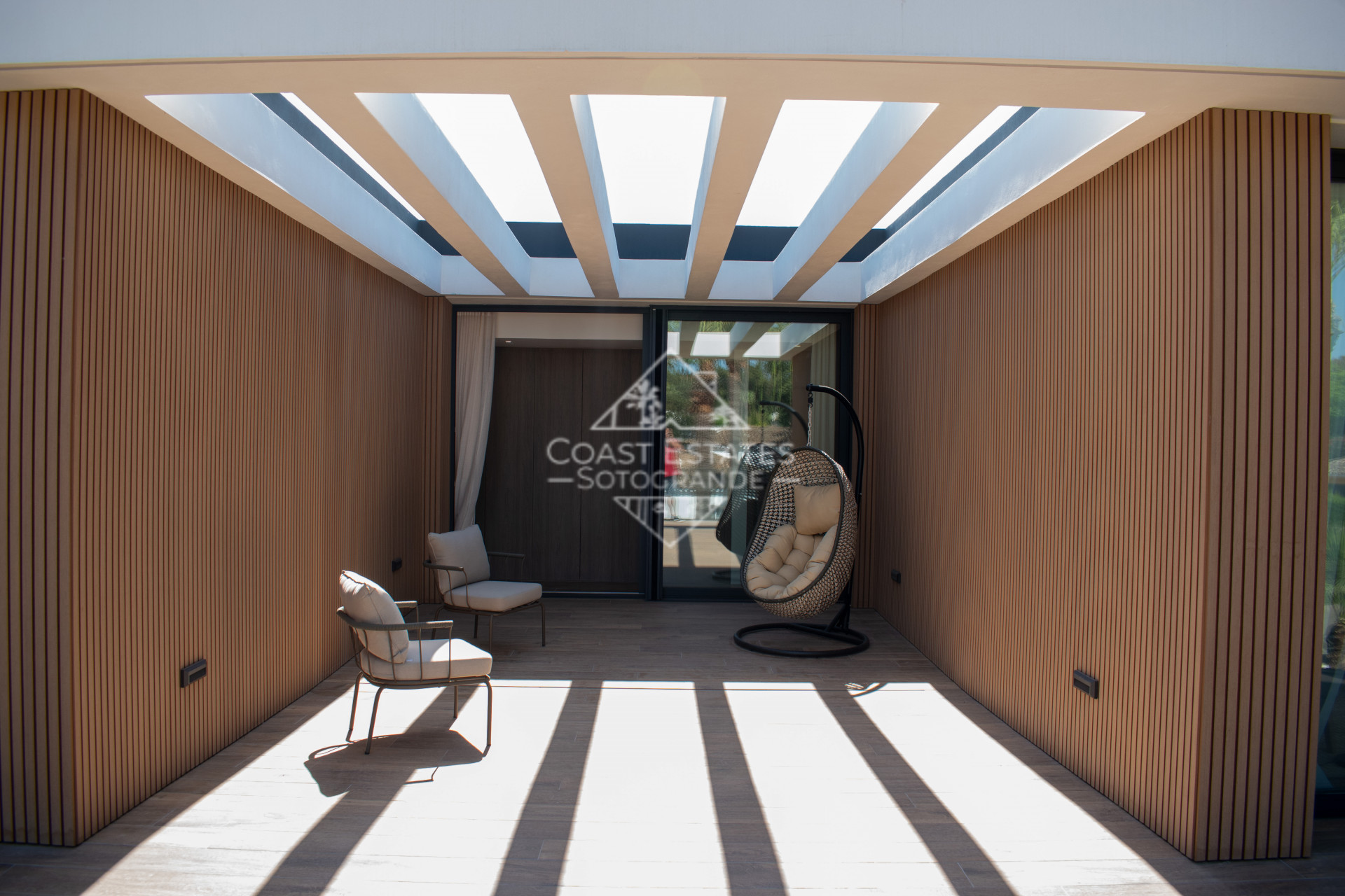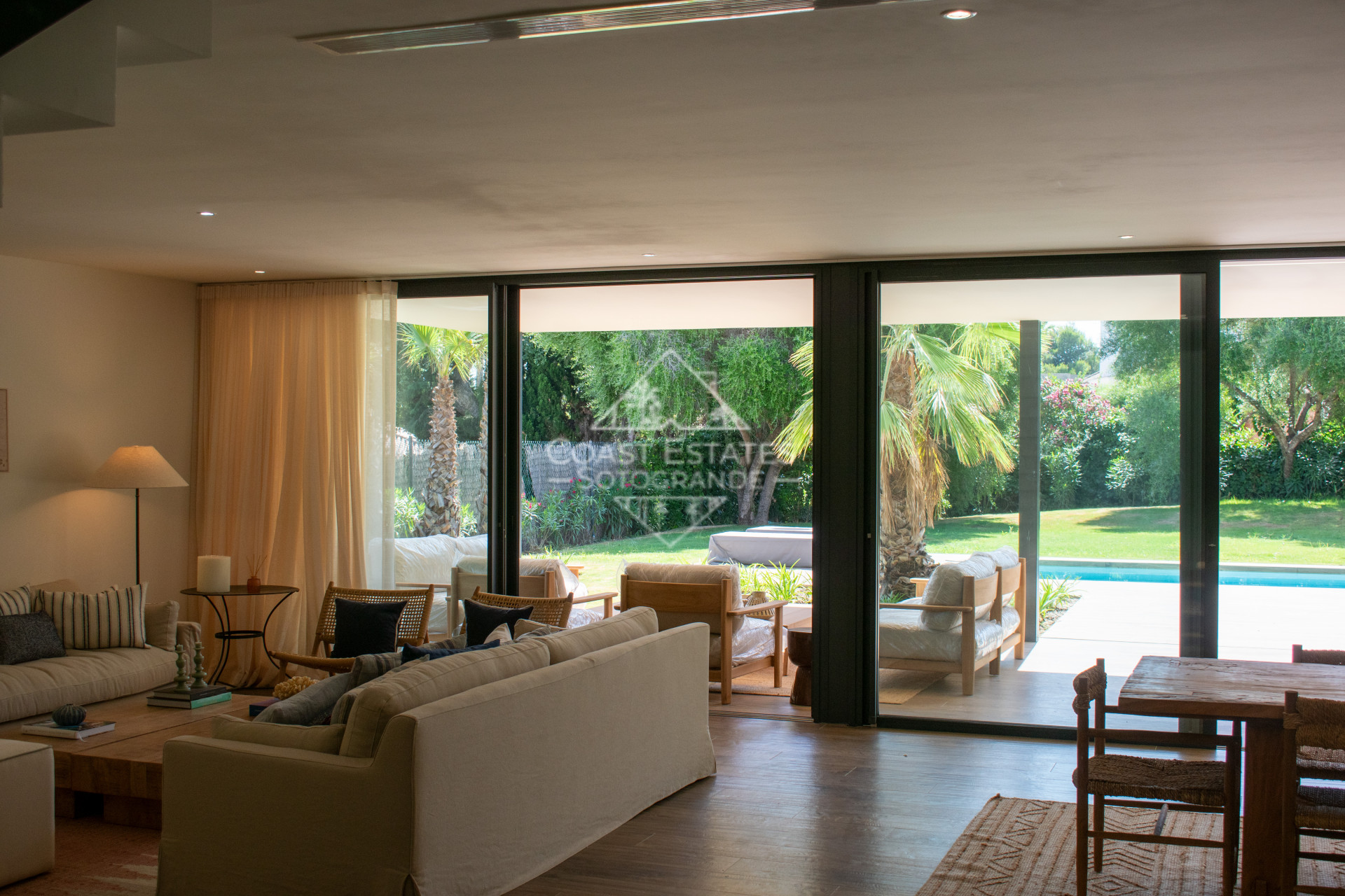 Eingebettet in die prestigeträchtige Zona B von Sotogrande Costa bietet diese neu erbaute Luxusvilla einen unvergleichlichen Küsten-Lifestyle in einer der begehrtesten Lagen von Cádiz. Das beeindruckende Design vereint moderne Architektur mit praktischer Eleganz und macht es zur idealen Wahl für alle, die ein anspruchsvolles und dennoch komfortables Zuhause suchen. Dank der idealen Lage in Strandnähe, Golfplätzen und wichtigen Annehmlichkeiten sind Komfort und Freizeit stets in Reichweite. Der private Pool und der wunderschön angelegte Garten schaffen einen ruhigen Rückzugsort, ideal zum Entspannen oder für Gäste.