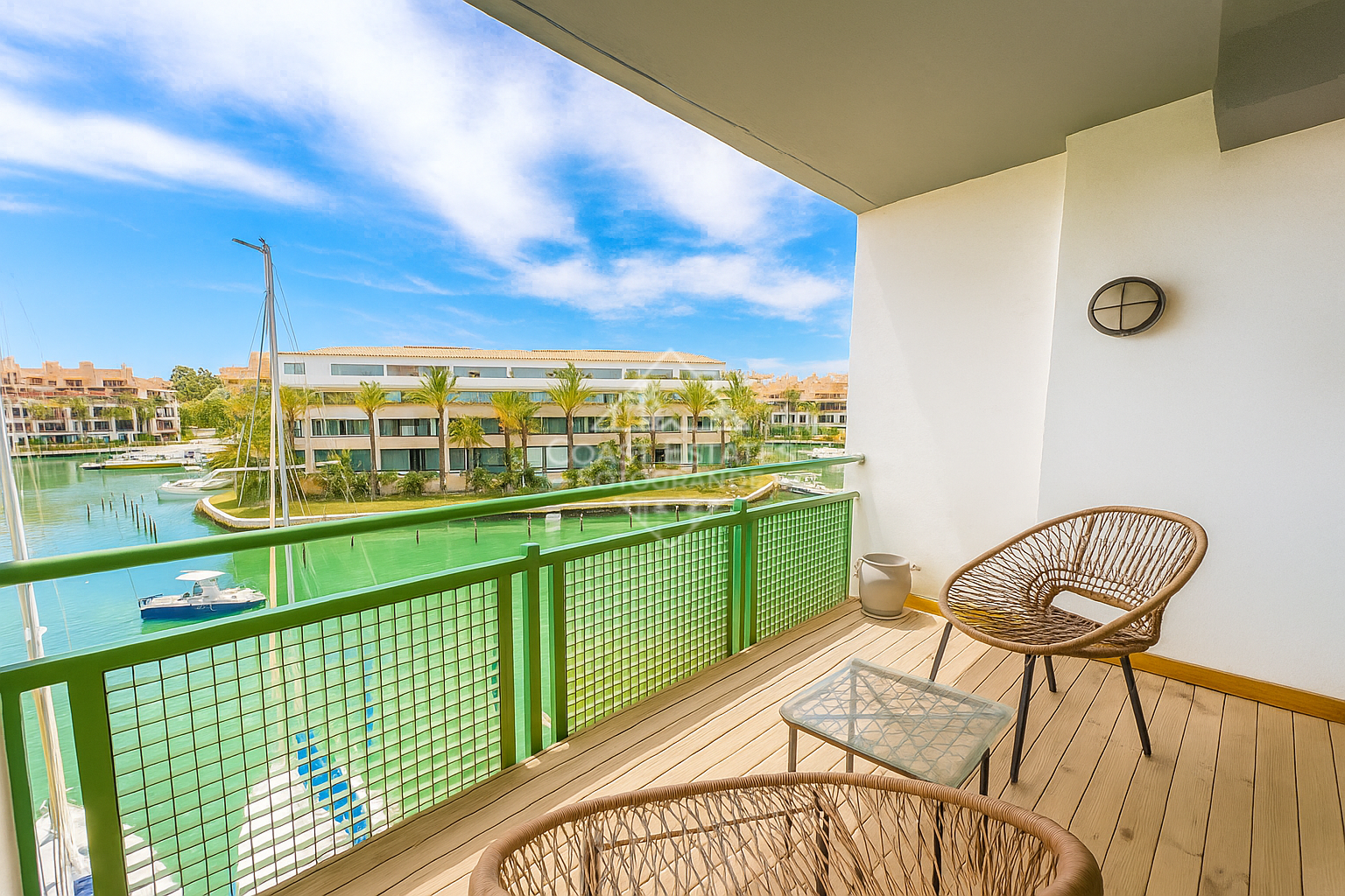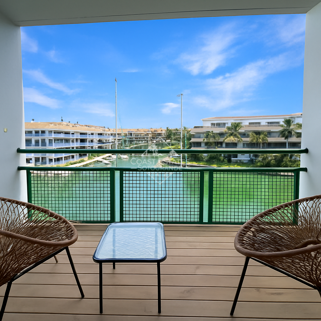 Este apartamento de dos dormitorios está situado en el complejo residencial Jungla del Loro, en el puerto deportivo de Sotogrande. Es el lugar perfecto para pasar el verano, con la playa de Sotogrande, numerosos clubes deportivos y el puerto a poca distancia. El apartamento tiene un hall de entrada luminoso, una cocina moderna totalmente equipada con todos los electrodomésticos y una pequeña zona de lavandería separada, un amplio salón y comedor de planta abierta que conduce a una terraza cubierta orientada al sur / oeste con una encantadora zona de estar al aire libre desde donde se puede disfrutar de las vistas. Hay dos dormitorios, el principal con cama de matrimonio, armarios empotrados y un espacioso baño en-suite. También hay un segundo dormitorio con dos camas individuales, armarios empotrados, y una terraza privada con fantásticas vistas del puerto deportivo y un cuarto de baño fuera de la sala. El apartamento está bellamente decorado con atención al detalle, creando un ambiente luminoso y playero.