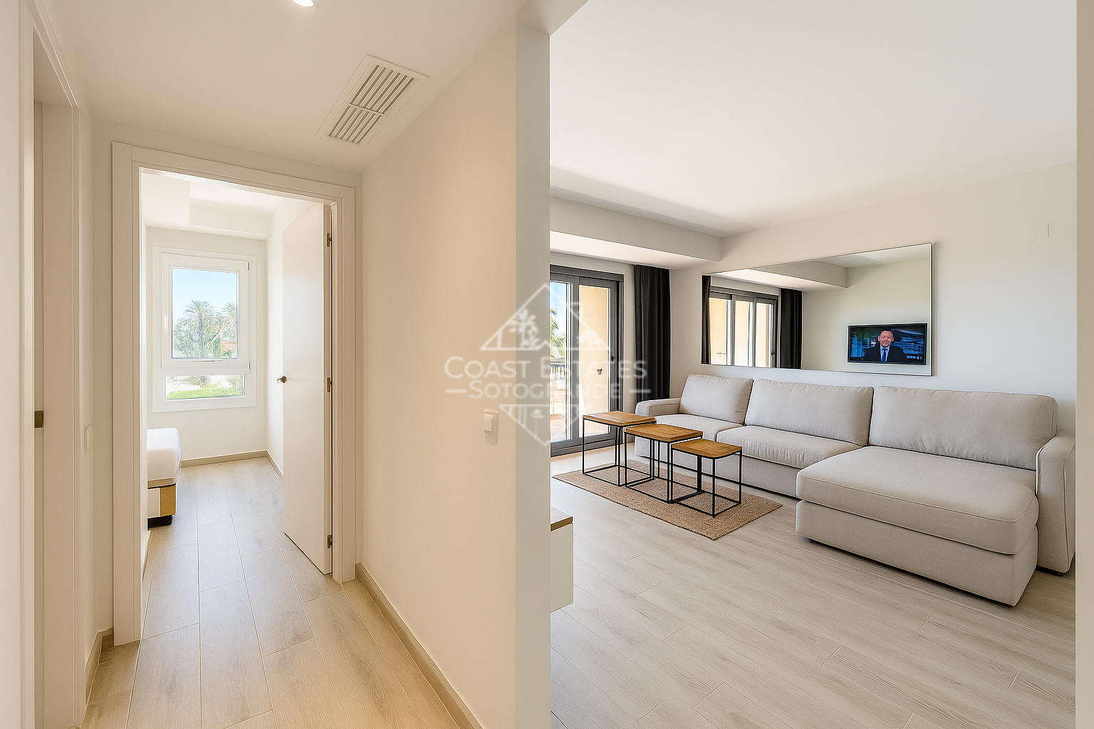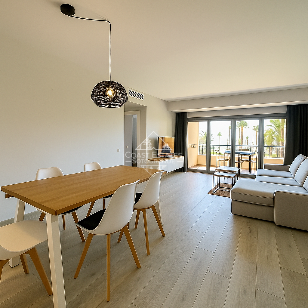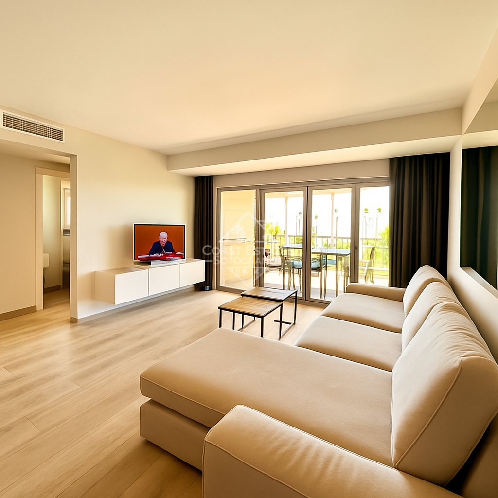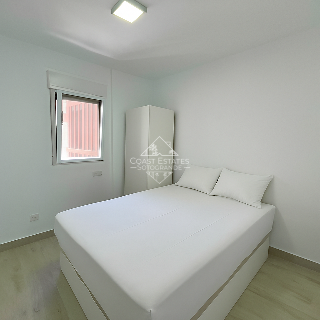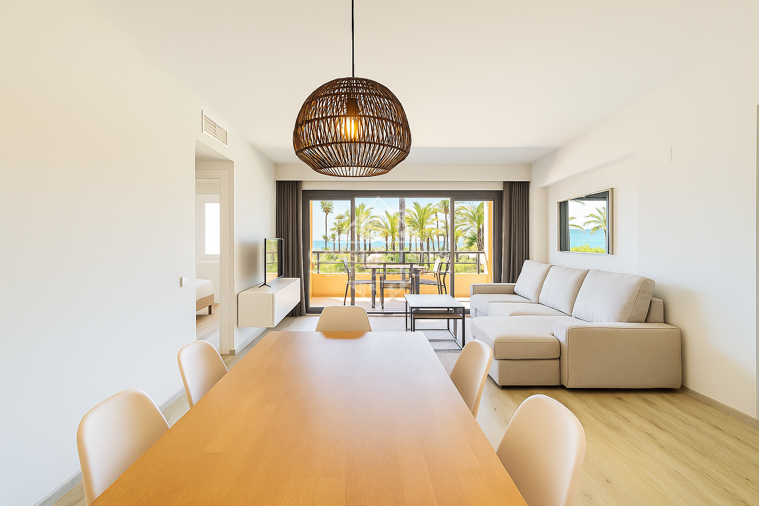 This charming recently renovated apartment is situated in one of the best locations in Sotogrande "Paseo del Mar" very close to the beach of Sotogrande. The apartment is on the second floor and comprises of a modern open plan fitted kitchen which opens onto the lounge and dining area, three bedrooms, and two bathrooms. The highlight of the apartment is the 12 m2 south-facing terrace with a dining area from where you can enjoy beautiful views over the communal gardens and the sea. The whole apartment has air conditioning. An underground parking space is included in the price.